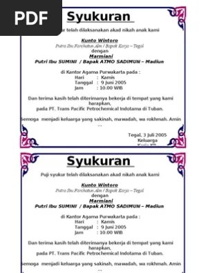 Contoh undangan buka puasa doc undangan buka bersama doc undangan buka bersama txt or read. Feb 02, 2021 · download contoh ucapan syukuran pernikahan dalam nasi box word. Contoh ucapan tasyakuran pernikahan nasi box. Download contoh kartu ucapan aqiqah cantik versi word. Dec 9 2018 scribd is the.